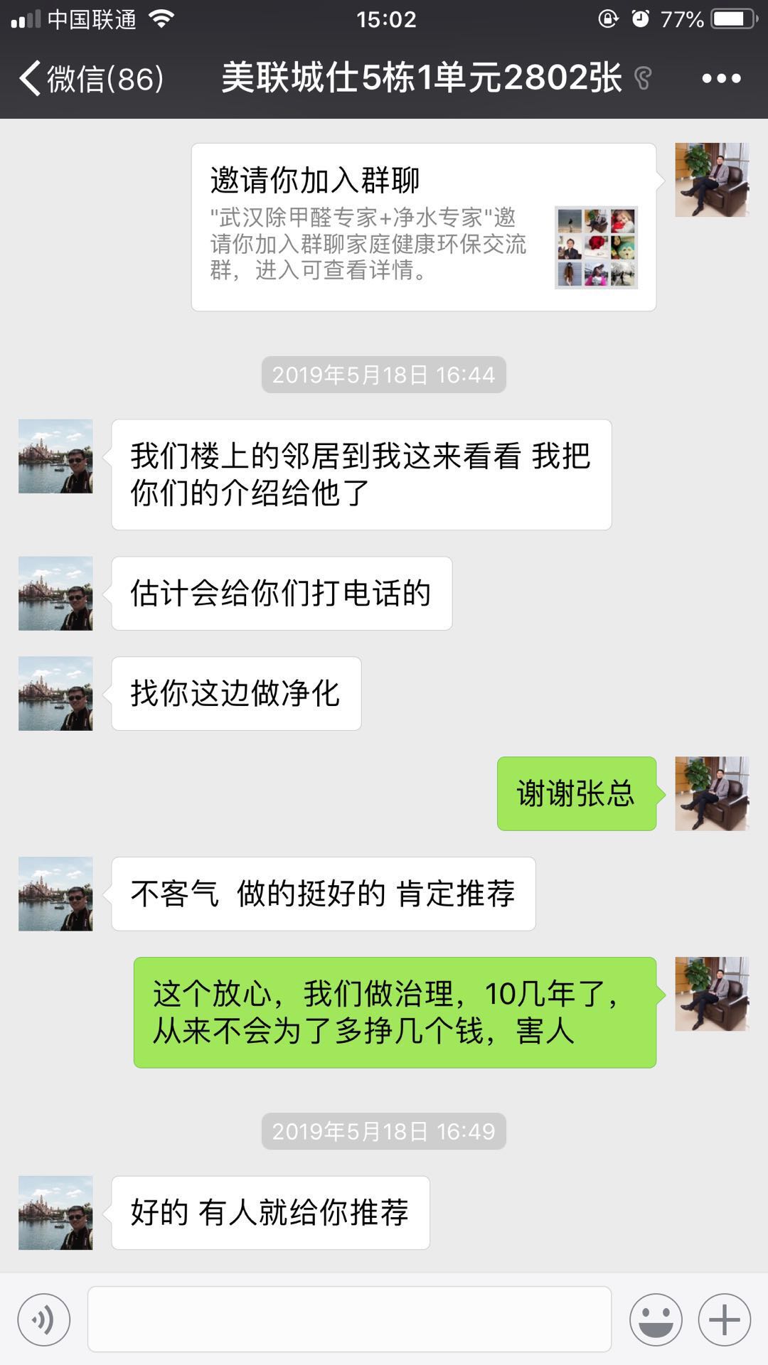 武汉美联城仕张先生室内除甲醛找到我们绿健君安,治理后很满意效果。还给我们推荐了客户! 相关推荐: 除甲醛系列产品 除甲醛常见问题 武汉绿健君安室内甲醛检测流程 武汉绿健君安室内甲醛治理流程 育才幼儿园除甲醛 58除甲醛客户评价 >>更多热门文章<< 上一篇:世界杯也要注重环保 环境安全为重中之重 下一篇:汽车甲醛伤身体 豪车同样也中枪
