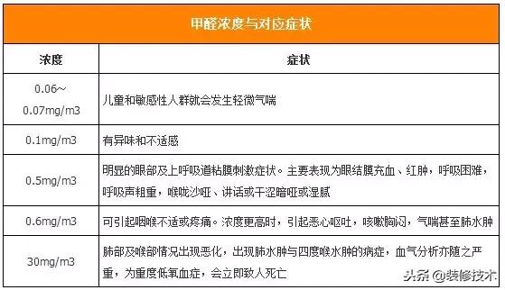 2、甲醛浓度与对应症状