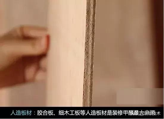 用于室内装修的胶合板、细木工板、中密度纤维板、刨花板和饰面板等人造板材,以及用人造板材生产的强化地板,因为使用的胶粘剂是以甲醛为主要成分的酚醛树脂和脲醛树脂,这类胶粘剂中常含有未参加反应的残留甲醛和胶粘剂热固化时分解释放出的甲醛。这些游离甲醛释放过程很长,长达数十年,所以在板材贮存和使用中会继续释放甲醛。